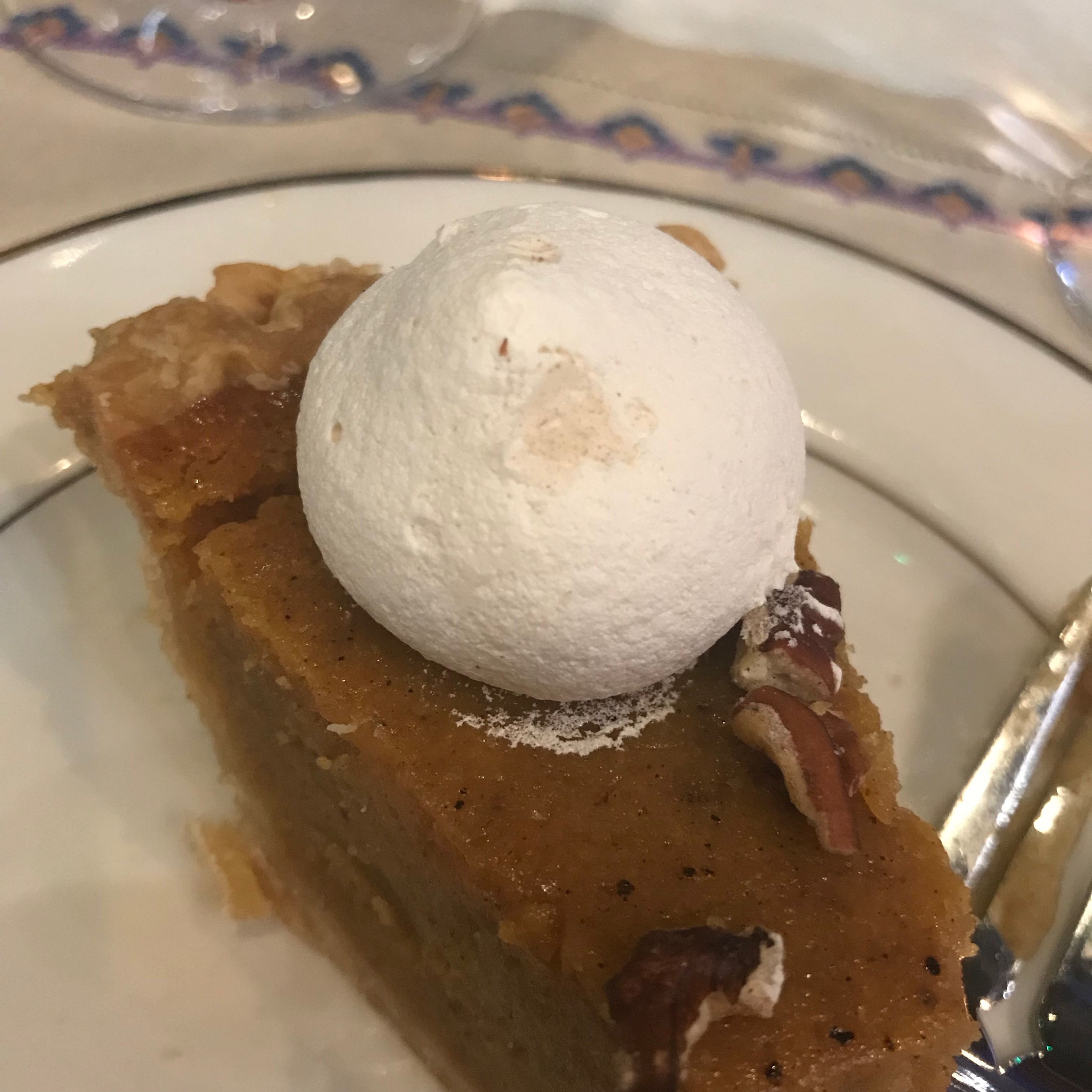 For dessert, a slice of sweet potato pie with a bit less sweet than I’m accustomed to, a bit more spice, and a ball of meringue on top. For the road, a “parting gift”: a slice of lemon pound cake from his grandmother’s recipe, subbing his creme fraiche for her sour cream.