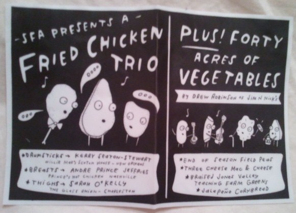 Sure, dessert came before dinner that night but that’s okay – we were all food-focused grown-ups who wouldn’t dare allow dinner to be ruined, no way, no how.  They called this one the Lodge Cast Iron Fried Chicken Feed.  All were given buckets and we lined up outside the Powerhouse to load them up.  Andre Prince Jeffries of Prince’s Hot Chicken of Nashville was responsible for the breasts.  I heard she toned down the usual heat a bit, but I still chased mine with some white bread and a pickle.  Sarah O’Kelley of the Glass Onion in Charleston paid homage to Mary Lou Gadsden with my favorite piece of the bird, the thigh.  And the classic drumstick came all the way from the legendary Willie Mae’s Scotch House in New Orleans, courtesy of Kerry Seaton-Stewart.  I can make a meal out of fried chicken just fine, but Drew Robinson of Jim ‘N Nick’s provided some rockin’ mac-n-cheese, greens, field peas and a plug of cornbread.