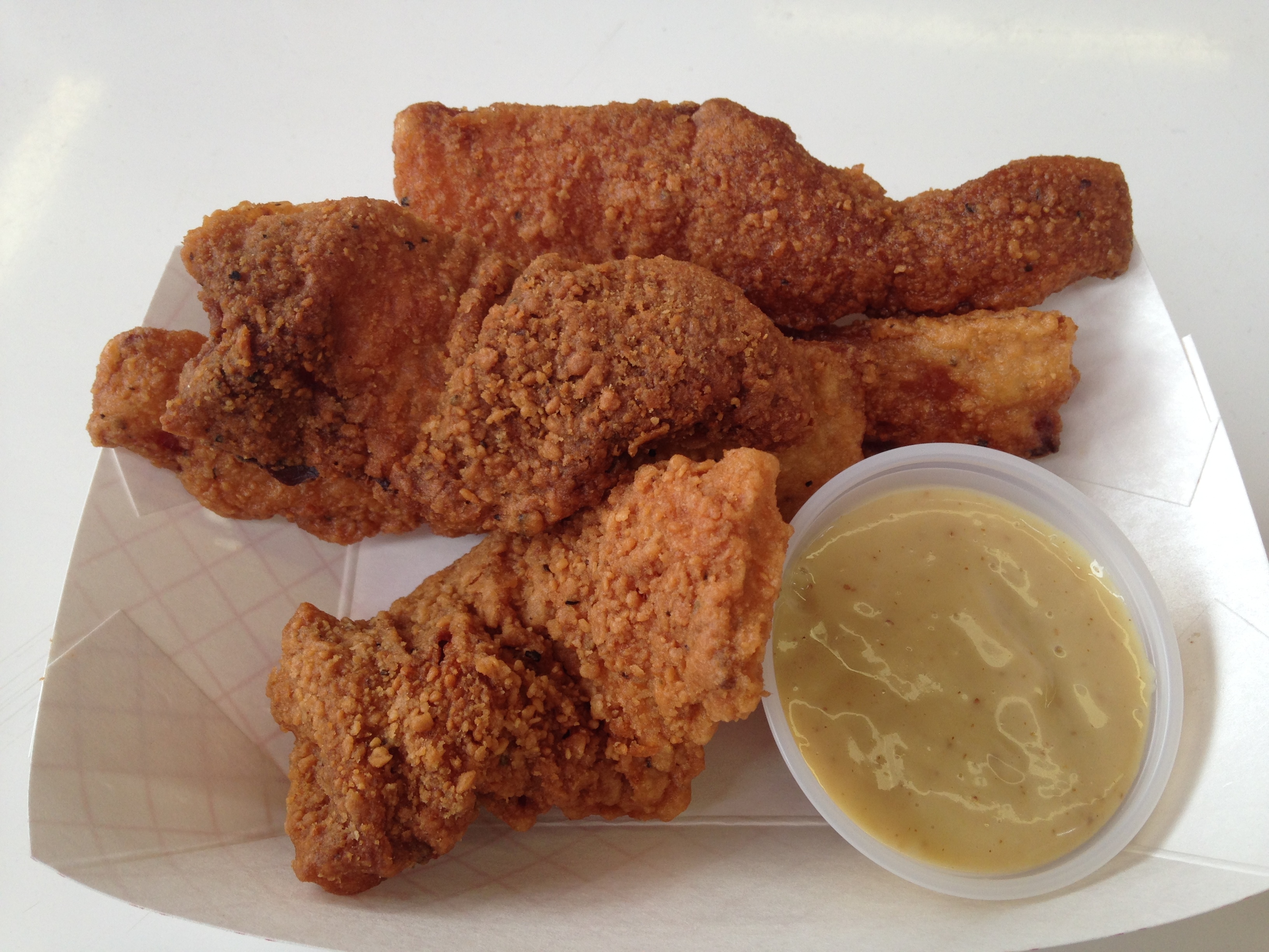 Last and absolutely, positively, undisputedly not least – the chicken-fried bacon. If the deep-fried butter I described in the last post sounded decadent, this may top it. Nothing fancy. Just a strip of thick bacon double-dipped in batter and fried. At this point I was really glad we were sharing – I could have easily eaten the whole basket. (Basket of Bacon. What a nice ring that has to it.)