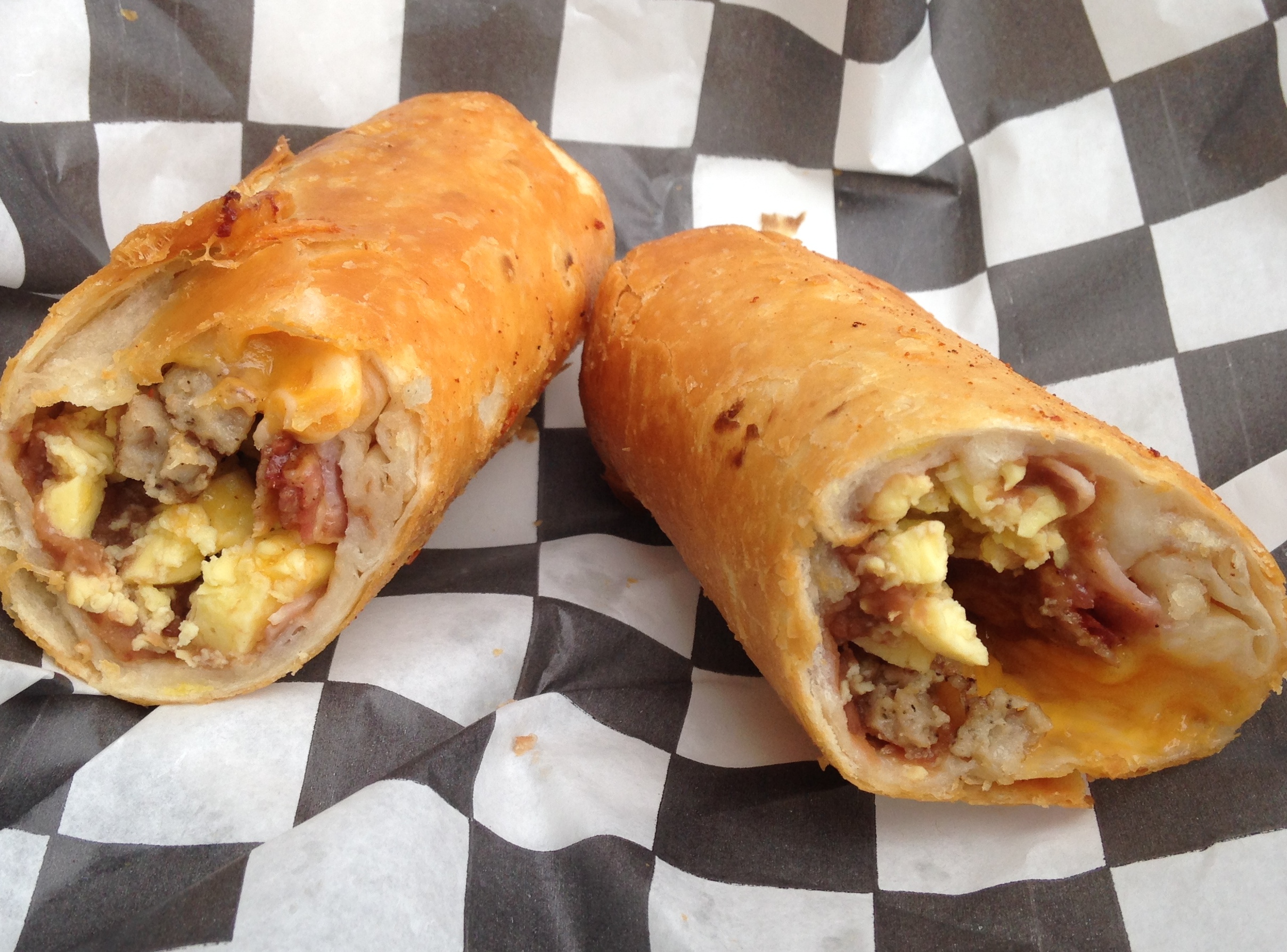 Another finalist was Breakfast for Dinner. I couldn’t wait to try this one – I dig tacos for breakfast, and I dig breakfast at any time, so this was right up my alley. It had everything you could imagine stuffed inside that fried tortilla: bacon, eggs, cheese, sausage, potato, onions, ham, and cinnamon roll bits. My bits of cinnamon roll were undetectable, but it was still a good idea, and a good breakfast taco regardless.