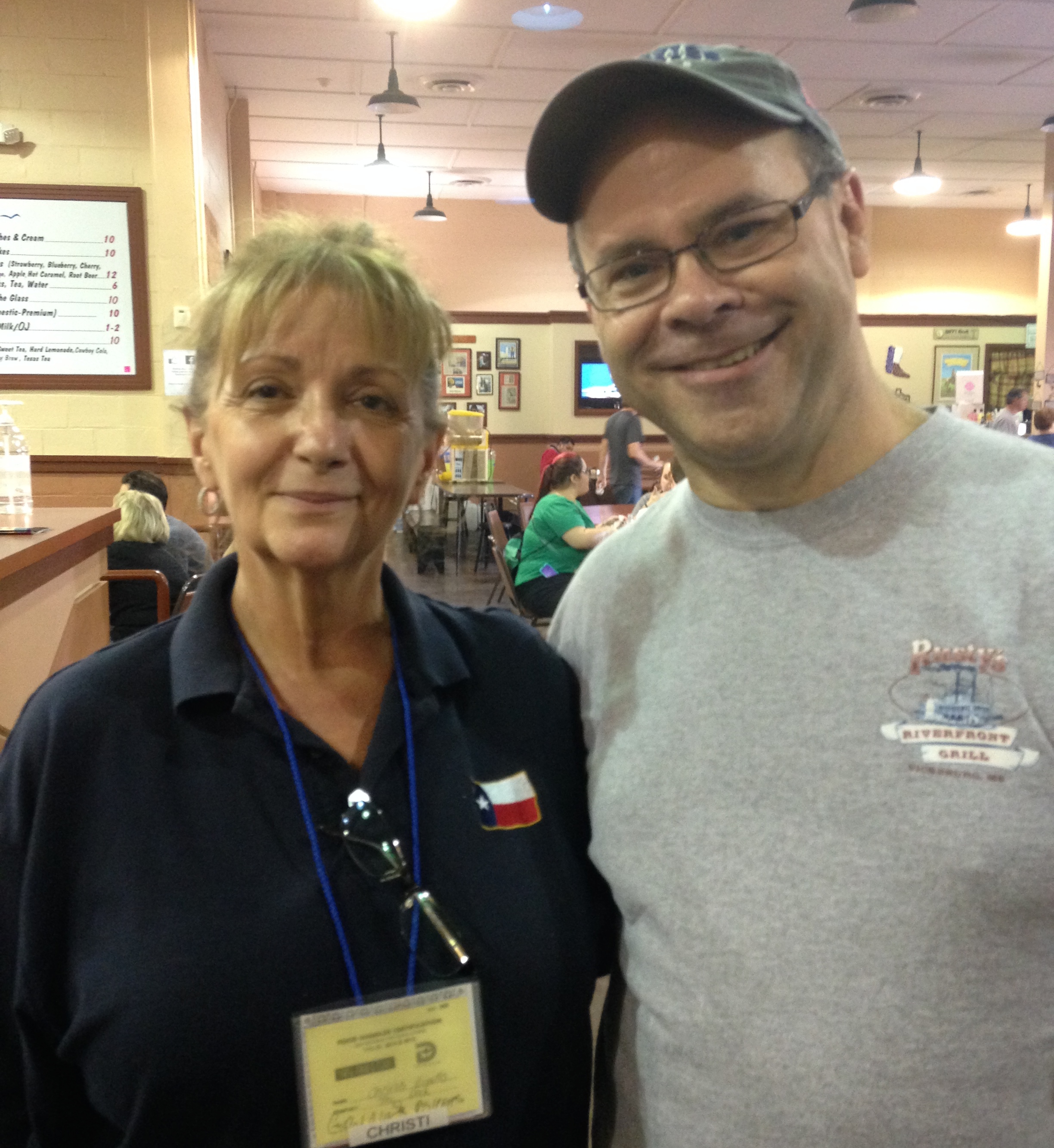 Well, I know an opportunity when I see one, so I promptly made a beeline to her table, introduced myself, and had a little visit with the Famous Funnel Cake Lady. We also noticed that over the years, her little restaurant within the fair had produced several finalists and winners in the Big Texas Choice contest, including the Twisted Texas Taco. As it turned out, it was her daughter, Christi Erpillo, who was the creative mind behind the newest Deep Fried Objects (DFO’s). They got on the phone, found out she was on the way, and we had a nice visit with her, too. She gave us a little tour, told us about some of the previous years’ contest entries, showed us pictures of some of the famous people they had fed, and gave us a preview of a line of unique drinks she was developing. We got the full Twisted Taco Tour.