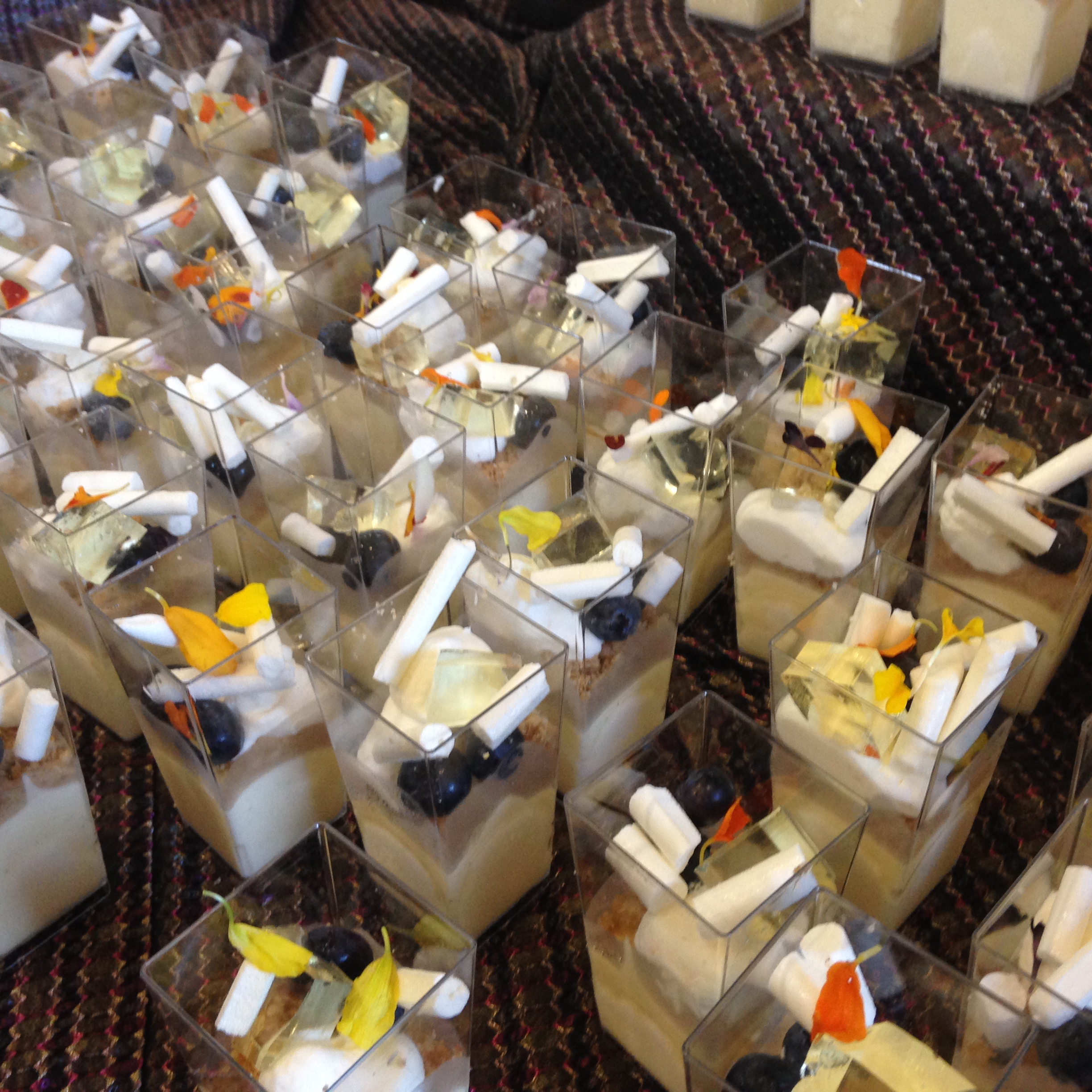A couple of lemon-related desserts really caught my attention. The Lemon Ice Box Pie from Erin Swanson (Restaurant R’evolution, New Orleans) was unlike any lemon ice box pie Granny ever made, topped with meringue sticks, blueberries, and cubes of limoncello gelee. Blueberries were also the garnish of choice for Jamie Foster (The Manship, Jackson), on her Lemon Panna Cotta with Blueberry Coulis, another favorite.