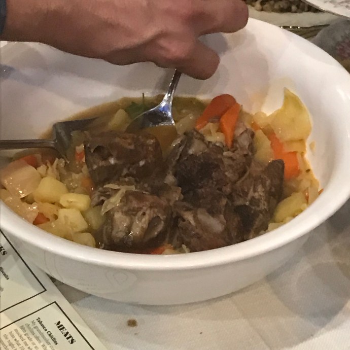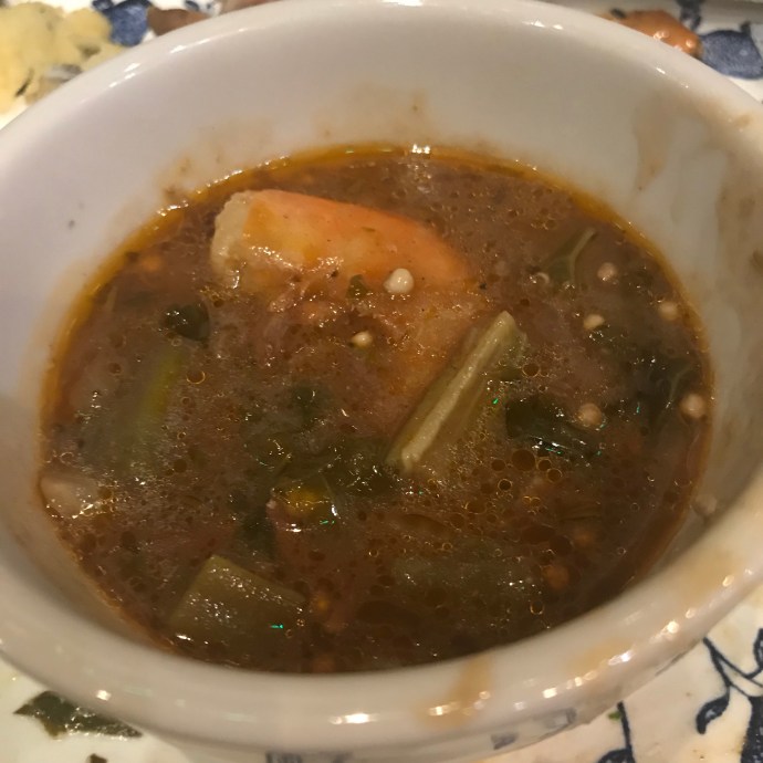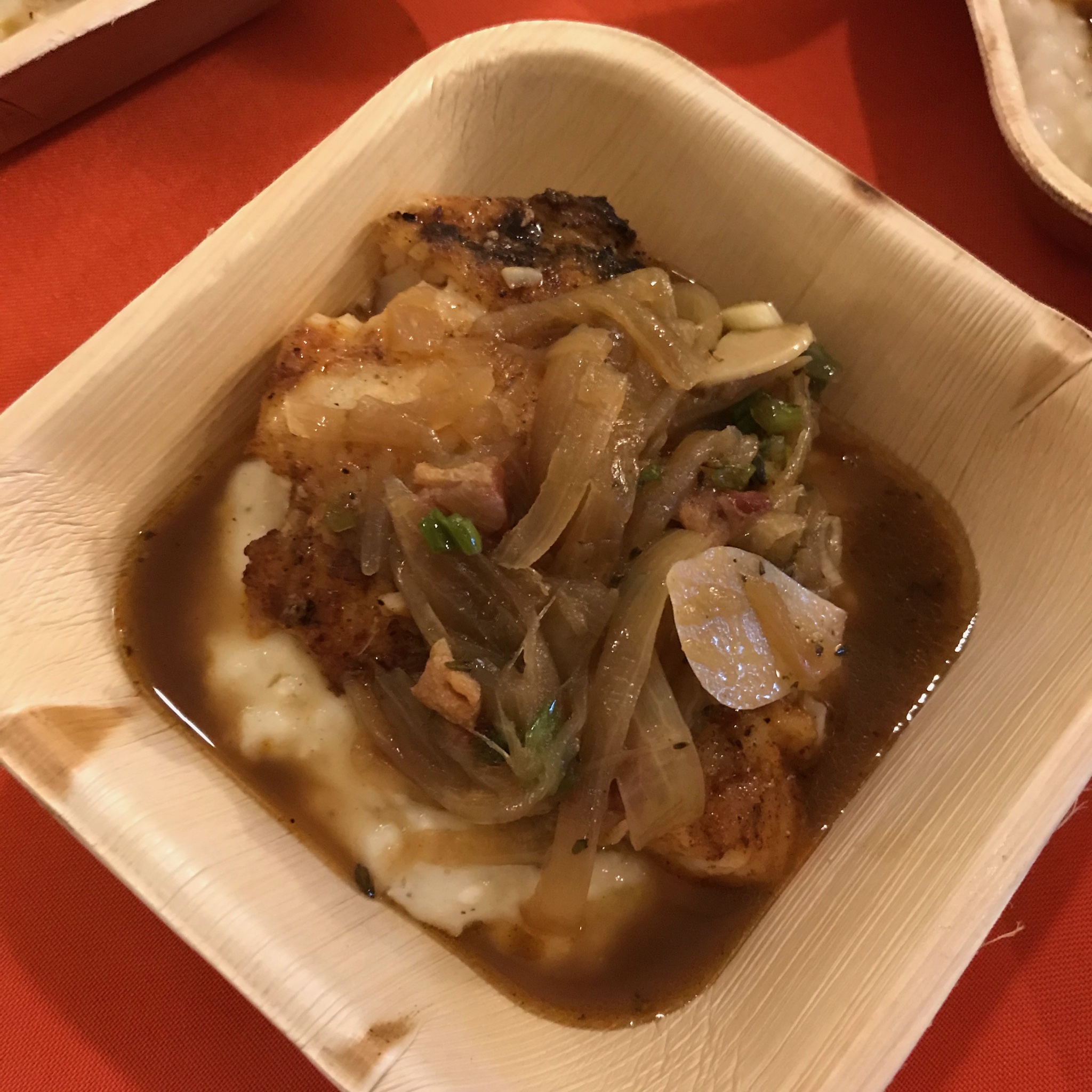 To represent seafood, we had shrimp gumbo, which he described as more akin to okra and tomato stew, “studded with some of my favorite Florida seafood.” Very tasty. Poultry came to the table as chicken purloo, a rice-based dish. Rib-stickin’ good. The beef offering, however, was my favorite: neckbones with Tabasco cabbage, potatoes and carrots. The meat in the crevices of the curvy vertebrae was incredibly flavorful – I’ve been missing out.