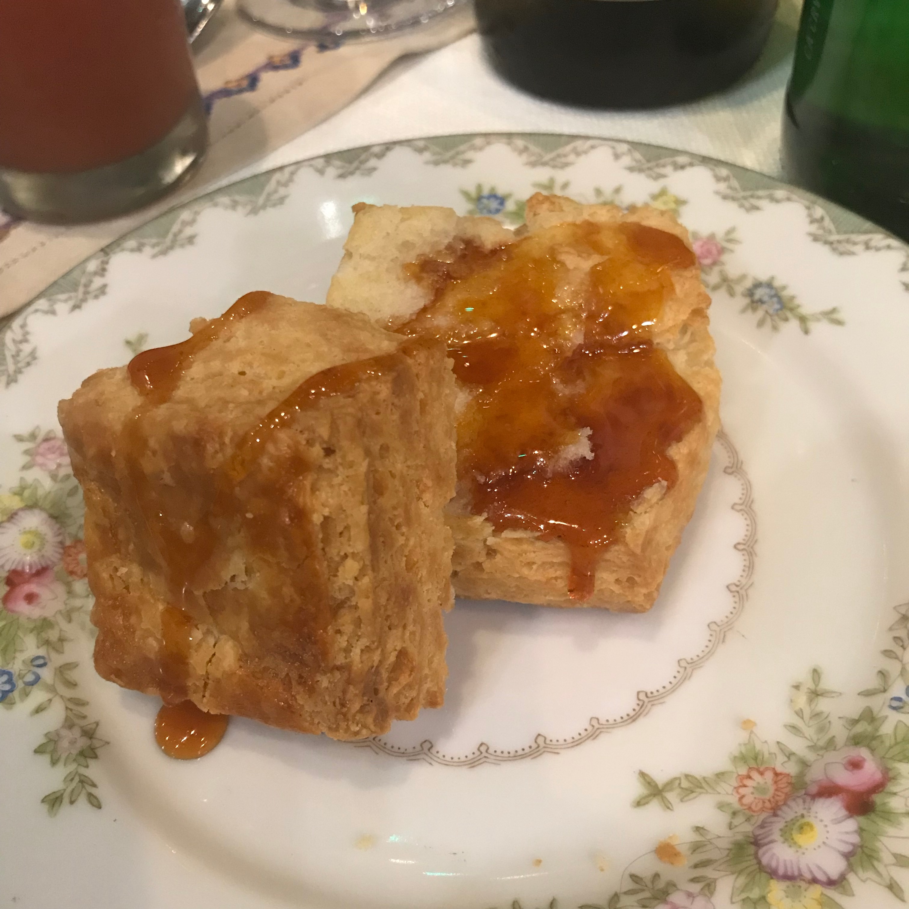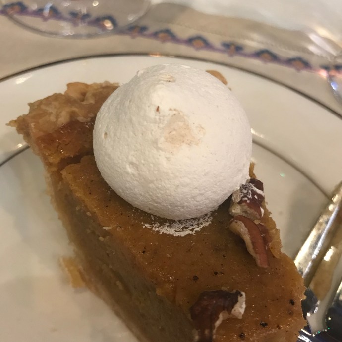 And now the pork. We’re back to the chitlins. At the table, to my left, was a chef who’d spent some time in Amory as a boy, and had been signing his cookbook that afternoon at Square Books. (I grabbed one the next day.) Directly across from me was a Hollywood writer/producer who grew up in Virginia. Next to him was the admissions director from my days at the Ole Alma Mater – I hadn’t seen him since. The Wife was to my right. Opinions varied, but it was Hollywood who was the most familiar and relaxed about them. Apparently he had eaten them relatively often in Virginia. The Wife said they weren’t as bad as she thought they’d be. I thought the texture was interesting, but the taste? Naw. (No reflection on chef. If I go to Seattle, I’ll be looking for another Chef Jordan meal.) I will add, should someone offer me a seriously crispy fried version somewhere down the line, I might try them again. Otherwise, with my one bite I have vigorously checked chitlins off the bucket list and am now firmly established in the post-chitlins era.